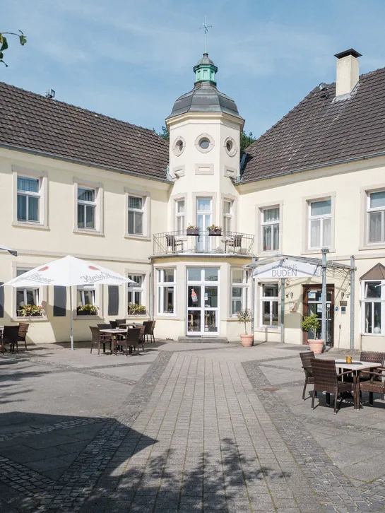 Located approximately 3.5 kilometers from Wesel city center, in a quiet, green setting, our Hotel Haus Duden is situated on the historic Bossigt estate. The expansive, park-like grounds offer a welcome escape from everyday life and are also an ideal starting point for exploring the Lower Rhine region by bike, on foot, or simply at a leisurely pace.