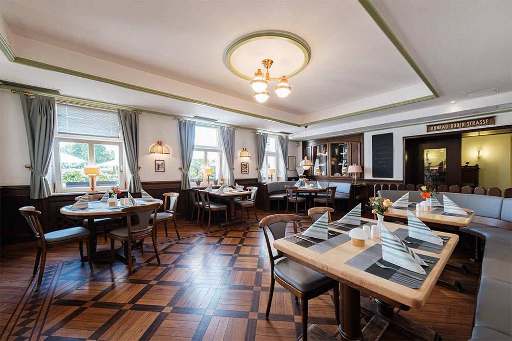 The 18th-century manor house, once the birthplace of Konrad Duden, combines historical charm with a warm, cozy atmosphere.