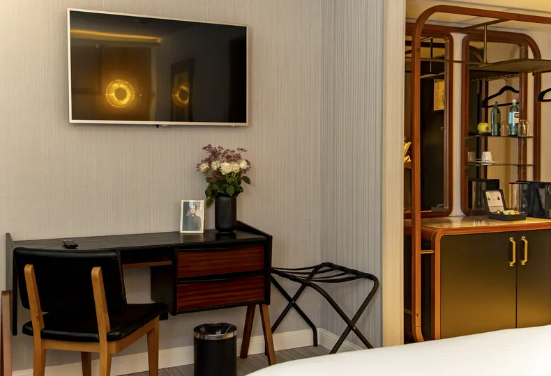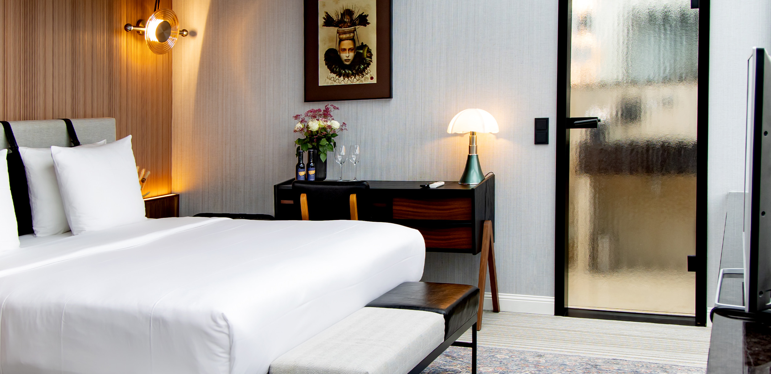 The rooms at the MUZE Hotel Düsseldorf – Handwritten Collection combine stylish mid-century design with modern comfort and a tranquil, relaxed atmosphere. Bright rooms, clean lines, and carefully selected details create a place to arrive and feel at home – right in the heart of the city.