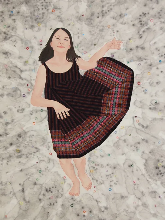 Gi-ok Jeon ist eine zeitgenössische koreanische Künstlerin, die das Malen mit Tusche in Seoul und Peking studiert hat, bevor sie nach Bangkok, Thailand, umzog und sich dort niederließ. Gi-ok erforscht ihre multikulturelle Identität, Mutterschaft und das tägliche Leben. Ihre Werke repräsentieren oft das koreanische Erbe, chinesische Ästhetik und das thailändische Leben. Gi-ok sagt: "Mein Hauptthema als Migrationskünstlerin ist die Suche nach einer Identität in Bezug auf meinen aktuellen Lebensraum in der thailändischen Gesellschaft. Als Künstlerin, Mutter, Hausfrau und Frau versuche ich, jede meiner Rollen darzustellen, und ich präsentiere meine vielfachen Identitäten durch Patoong und Hanbok: thailändische Frauenkleidung und koreanische traditionelle Kleidung, sowie die Bilder meiner Tochter, halb koreanisch und halb thailändisch."