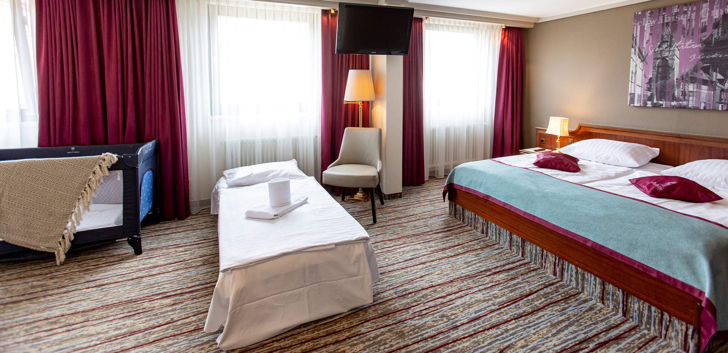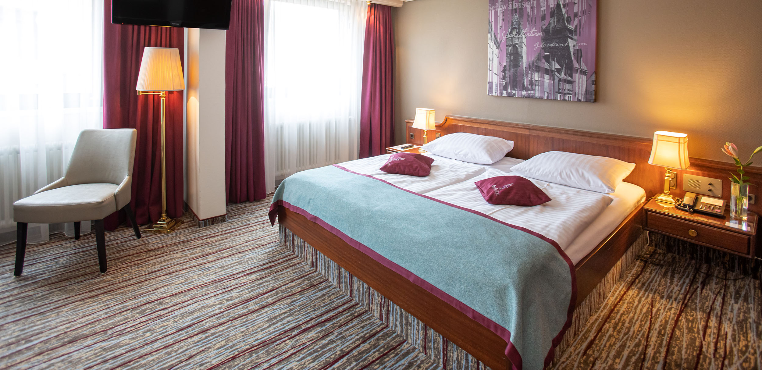 Die Zimmer im Hotel Pelikan bieten einen angenehmen Rückzugsort nach einem Tag in Schwäbisch Gmünd. Klassisch eingerichtet und funktional ausgestattet, verbinden sie Ruhe mit wohnlicher Atmosphäre. Verschiedene Kategorien ermöglichen es, den Aufenthalt individuell zu gestalten – ob für einen Kurztrip, eine Geschäftsreise oder Zeit mit der Familie.