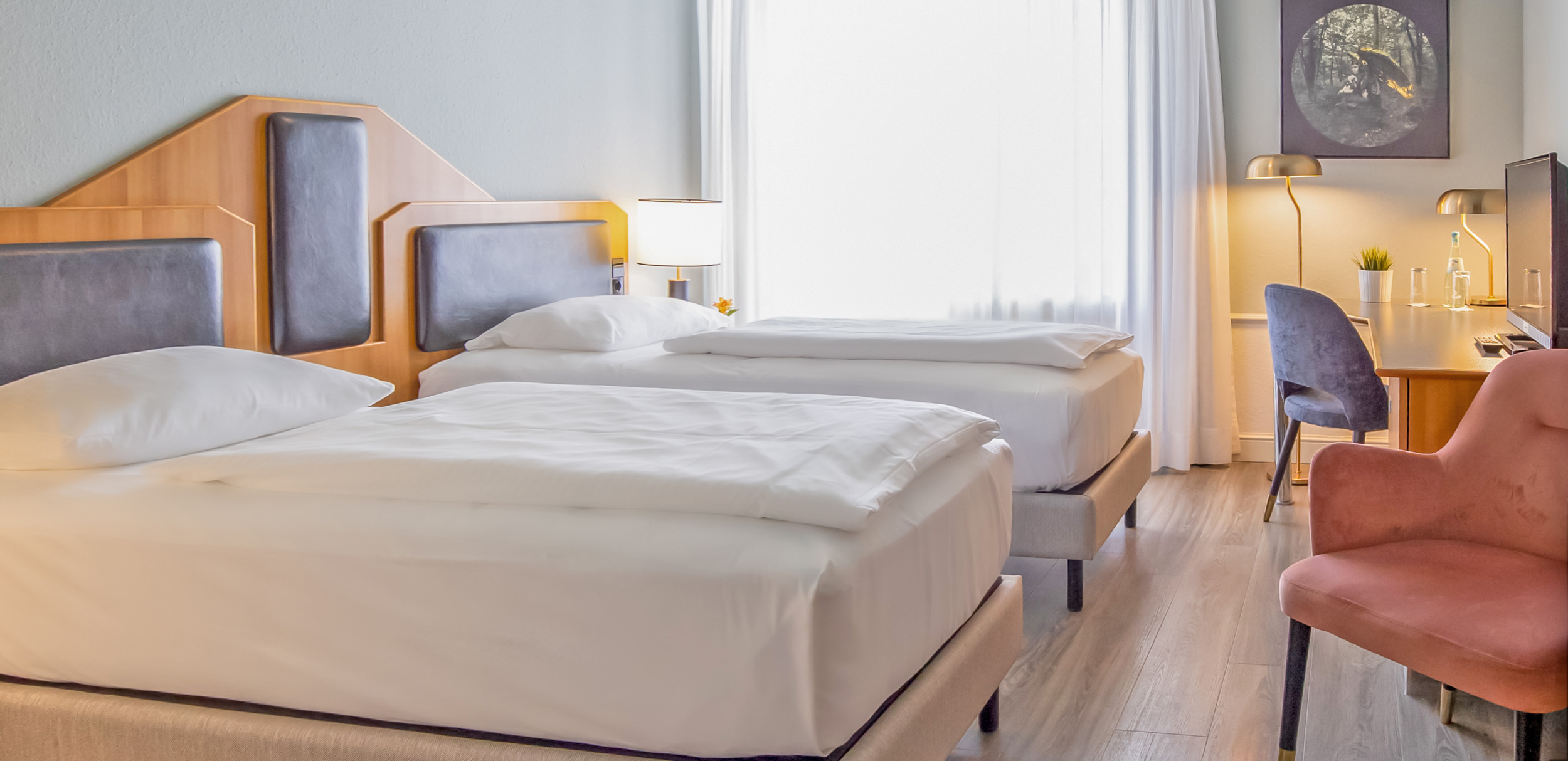 Die 201 Zimmer im Mercure Hotel Pforzheim bieten eine angenehme Kombination aus Komfort und Funktionalität. Verschiedene Zimmerkategorien sorgen dafür, dass Geschäftsreisende, Urlaubsgäste oder Durchreisende den passenden Rückzugsort für ihren Aufenthalt finden.